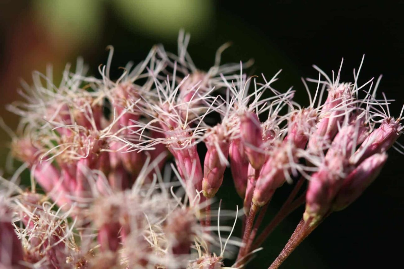 Native to eastern USA, Gravel root is a tall, handsome, clumping perennial with whorls of finely-toothed, lance-shaped leaves on unbranched stems. Dome-shaped corymbs of feathery lavender-pink flowers appear in mid to late summer, their scent redolent of vanilla. It can get up to around 3 meters in height with a spread of one metre. Often found on the borders of woodland, river sides and thickets, it favours a sunny or partially-shaded spot.