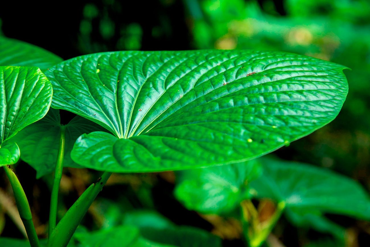 The shrub grows to 2–3 m in height with jointed stems and large heart-shaped leaves (7,9). The leaves are alternate and cordate with a wavy entire margin and an abrupt acute point. The petiole is about 2.5cm long, dilated at the base with linear, erect stipules, and prominent veins diverging from the base of the leaf blade. Flowers are small apetalous and on slender spikes (4).
