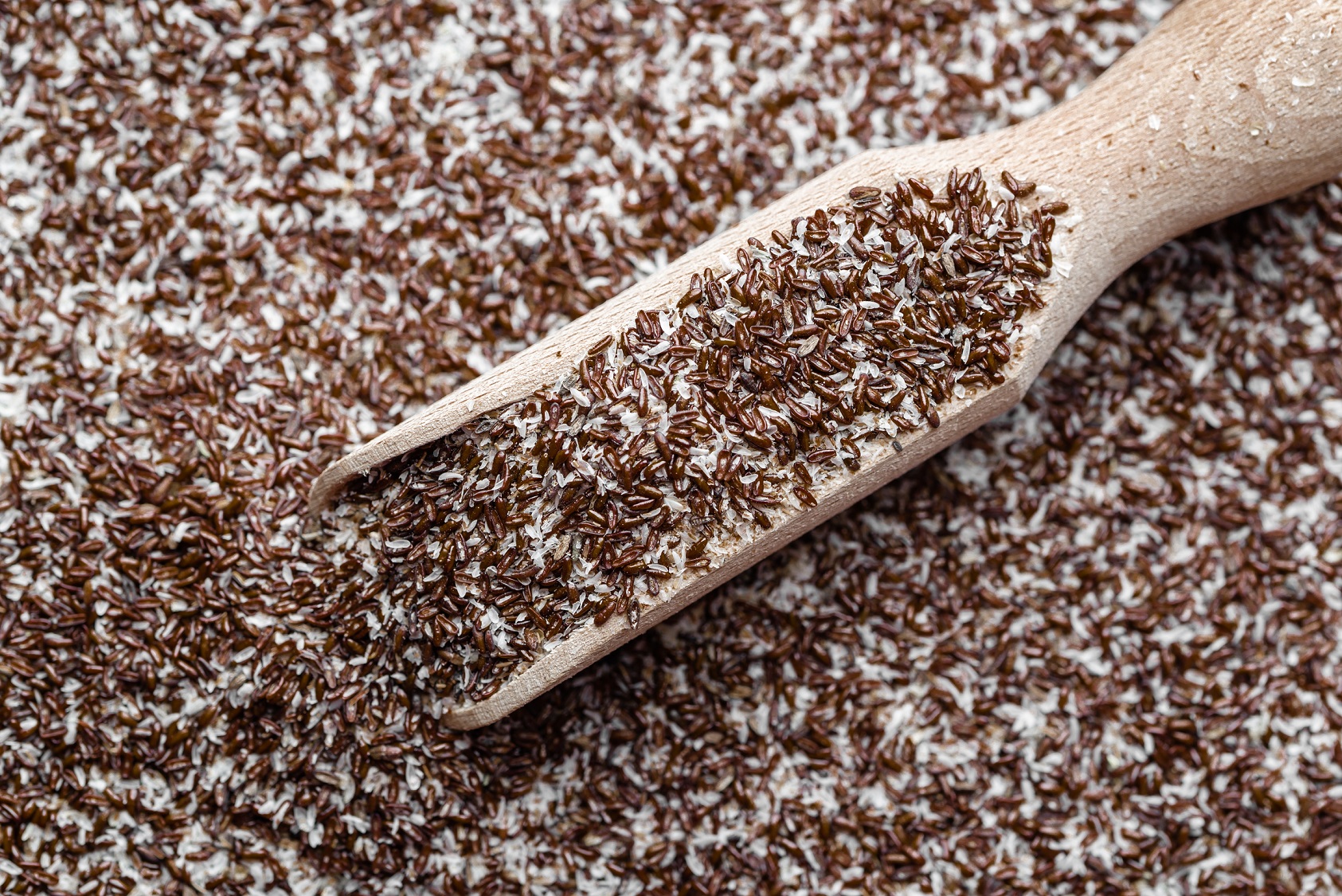 Psyllium husks are derived from the Plantago plant which is an annual that is grown in Southern Europe and North West Africa; it has become a very common plant that naturally grows in many locations across the globe. It is characterised by rosettes of large, oval leaves and large, upright dense spikes of flowers that can reach up to 15 cm in height. The flowers form small clusters around large stamens and are green-brown in colour. The plants seed is an ovoid-oblong shape up to 2-3mm long and are a pinkish brown in colour. The seed is covered by the seed ‘husk’, which is the part of the plant used in a medicinal and culinary fashion. The husk separates easily from the rest of the seed for cultivation and harvesting purposes.