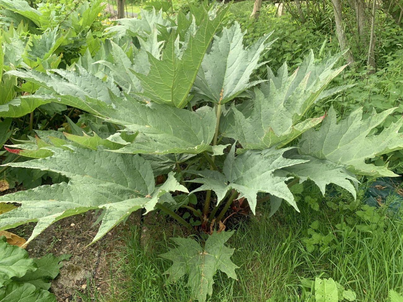 - This ornamental rhubarb is an architectural plant that demands space. Plant it out in a sunny location with adequate space for a wide spread of its palmate leaves. Cut down flowering stems after blooming and mulch annually to conserve moisture.