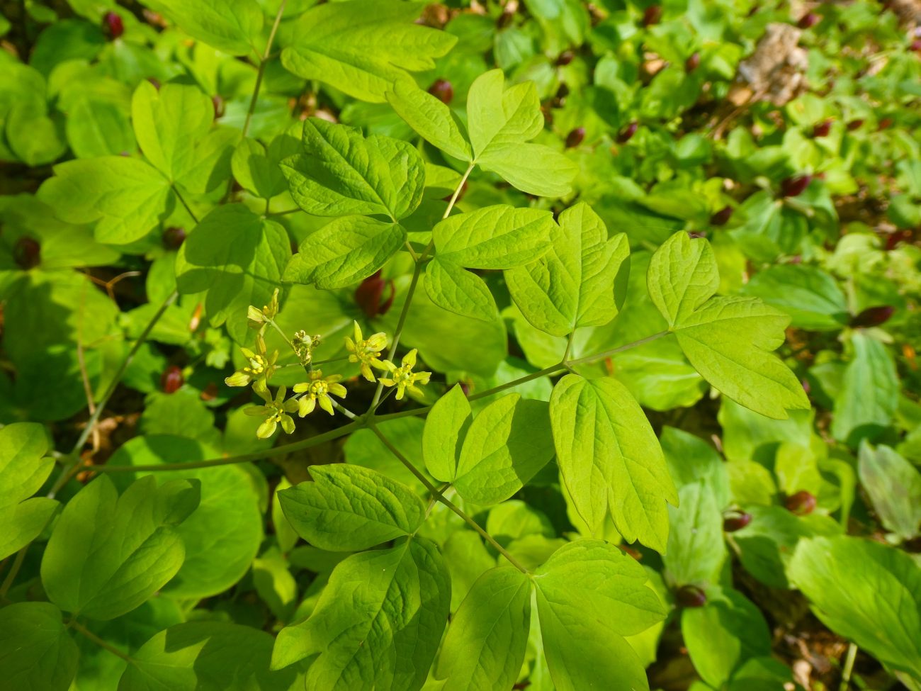 Blue cohosh prefers dappled sunlight of shady garden. It thrives in a fertile, slightly acidic, loamy soil containing organic matter from decaying leaves and other plant material.