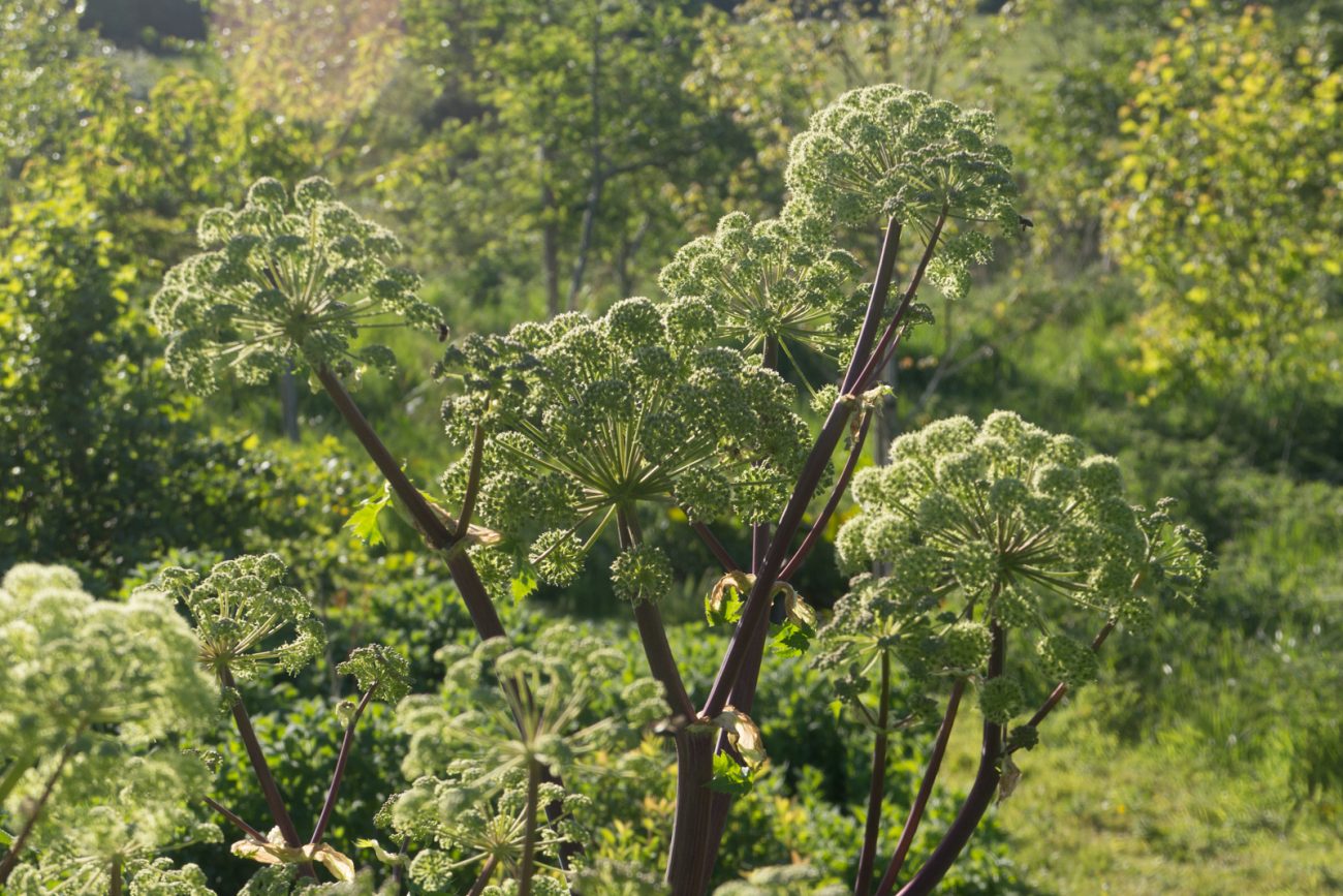 Angelica’s volatile oil content and resulting antimicrobial actions may be beneficial in maintaining health following infections, e.g. urinary tract infections (2). Like many plants that thrive in the damp, it is useful for gardener’s aches and pains that get worse in the cold, damp months of autumn and winter (meadowsweet and white willow bark are two other herbs to consider for damp inflammatory conditions in the muscolskeletal system) (2).