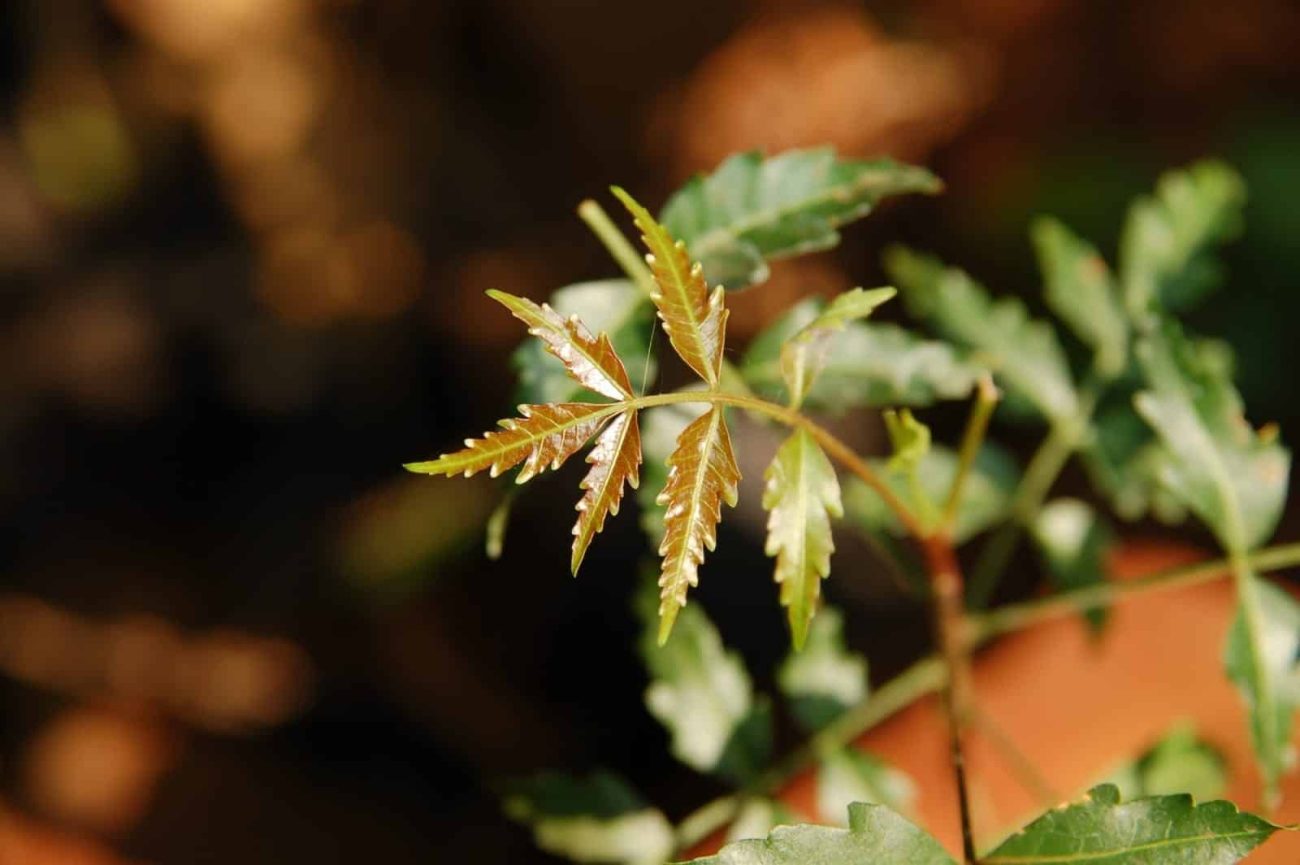 The neem tree is a robust and fast-growing plant that can live for up to 200 years. A mature tree can reach heights of 20m and spreads of 10m. The tree will produce yellow fruits after four years of growth and its flowers are white and have a wonderfully sweet scent. Its leaves are narrow and lanceolate in shape, compound and comprise of 15 leaflets arranged in alternate pairs. Neem thrives in well-drained soils all over India at altitudes of up to 1000m. All parts of this plant are highly regarded in medicine.