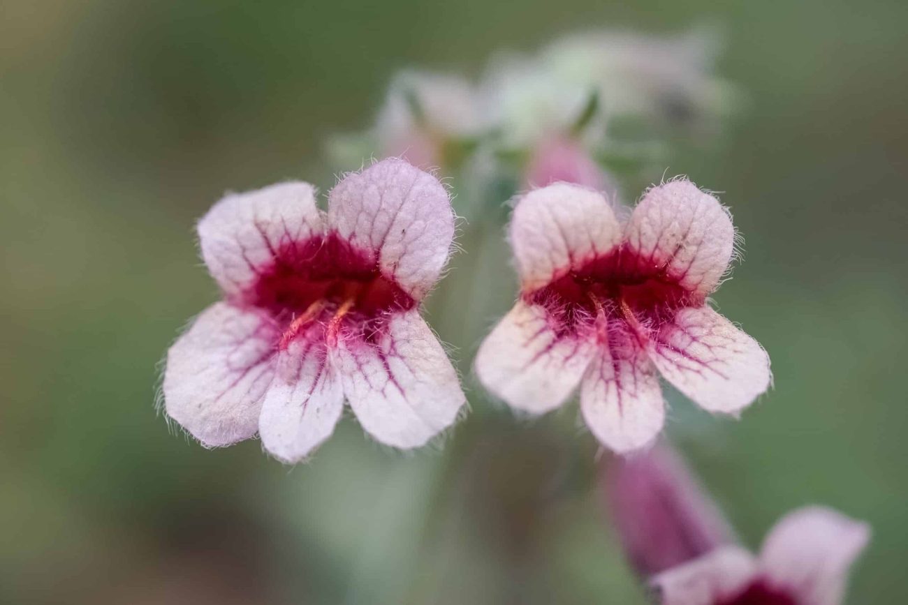 Rehmannia, is a rhizomatous, basal-leaved, rosette-forming, herbaceous perennial that flowers in late spring to early summer with pendant, tubular, foxglove-like, reddish-brown to yellowish-brown flowers with dark purple veins.