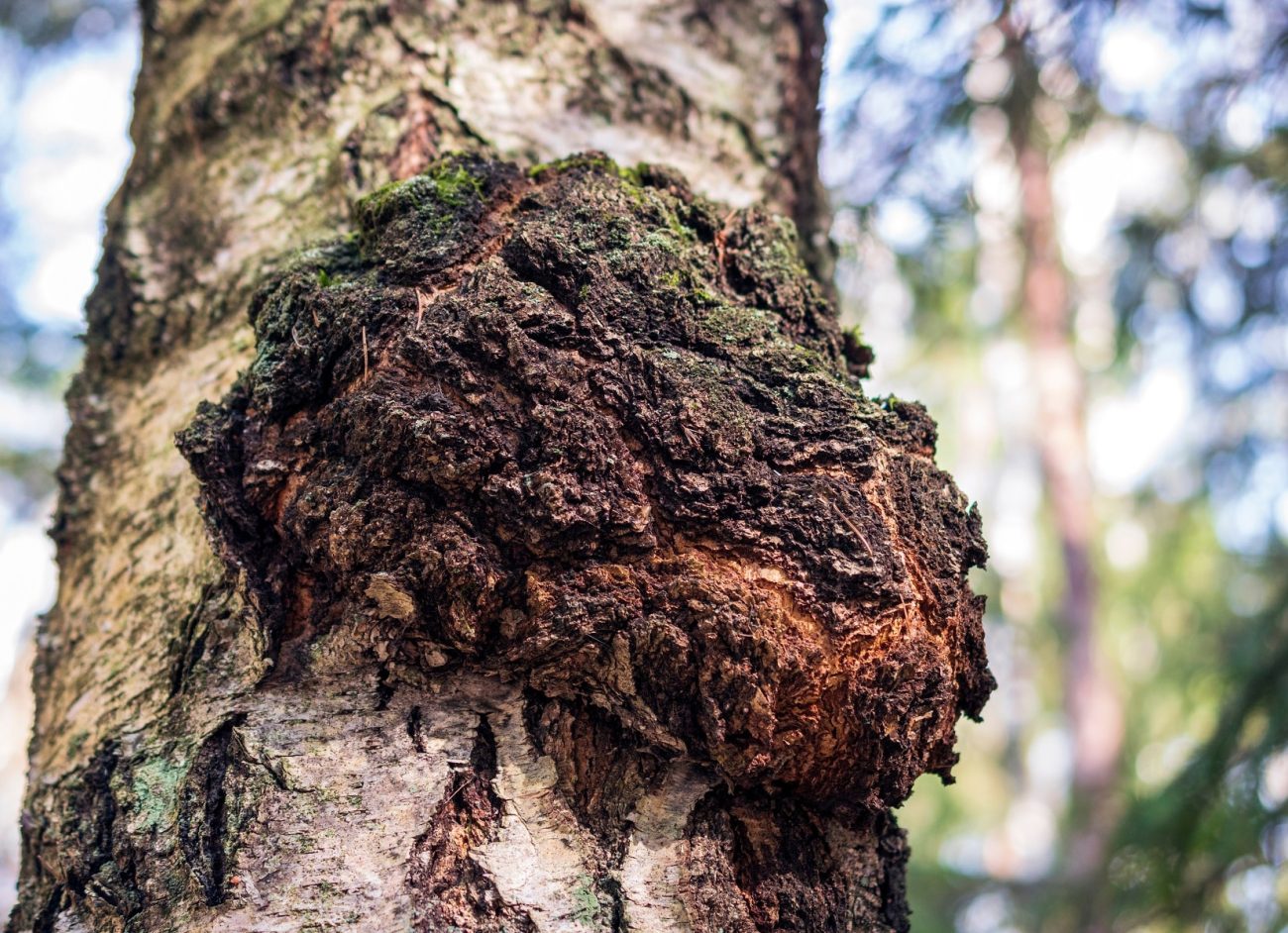 Chaga grows naturally on living trees — predominantly birch trees, however they can also grow on other tree species.