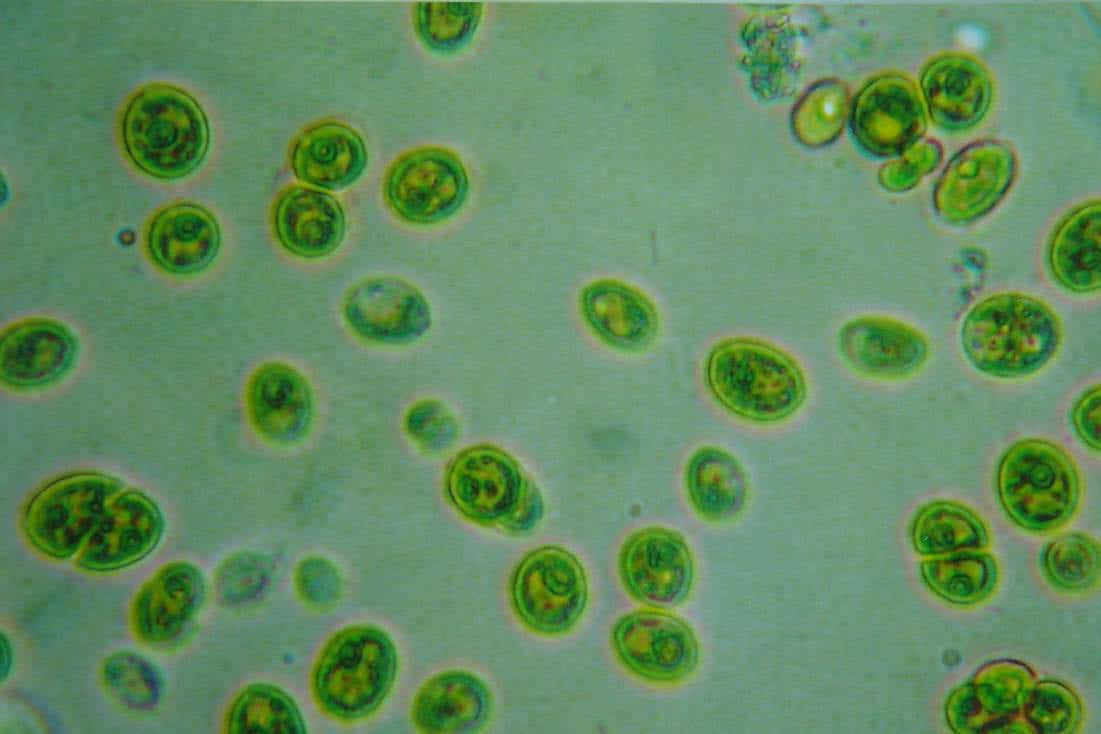 Chlorella is one of the earliest photosynthesising microscopic freshwater plants evolving over 2 billion years ago. It is a single-cell green algae. Chlorella contains the green pigment chlorophyll, giving it a distinct green colour and will multiply rapidly through the process of photosynthesis.